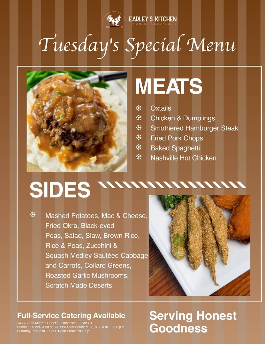 At Earley's Kitchen, you'll find a diverse and mouthwatering selection that caters to all kinds of cravings. Whether you're in the mood for something hearty or a lighter bite, the menu offers a range of dishes made with fresh, high-quality ingredients. Start your meal with a tasty appetizer, like the perfectly crispy fried pickles, or dive into one of their signature sandwiches that are packed with flavor. If you're after something more filling, the comfort food classics like juicy burgers and savory chicken tenders are sure to satisfy. Each dish is crafted with care, offering something for everyone, no matter what you're craving that day. The vibrant atmosphere of this Tallahassee gem makes it the perfect spot to enjoy a meal with friends, family, or coworkers. Make sure to check out the full spread - it’s guaranteed to leave you coming back for more.